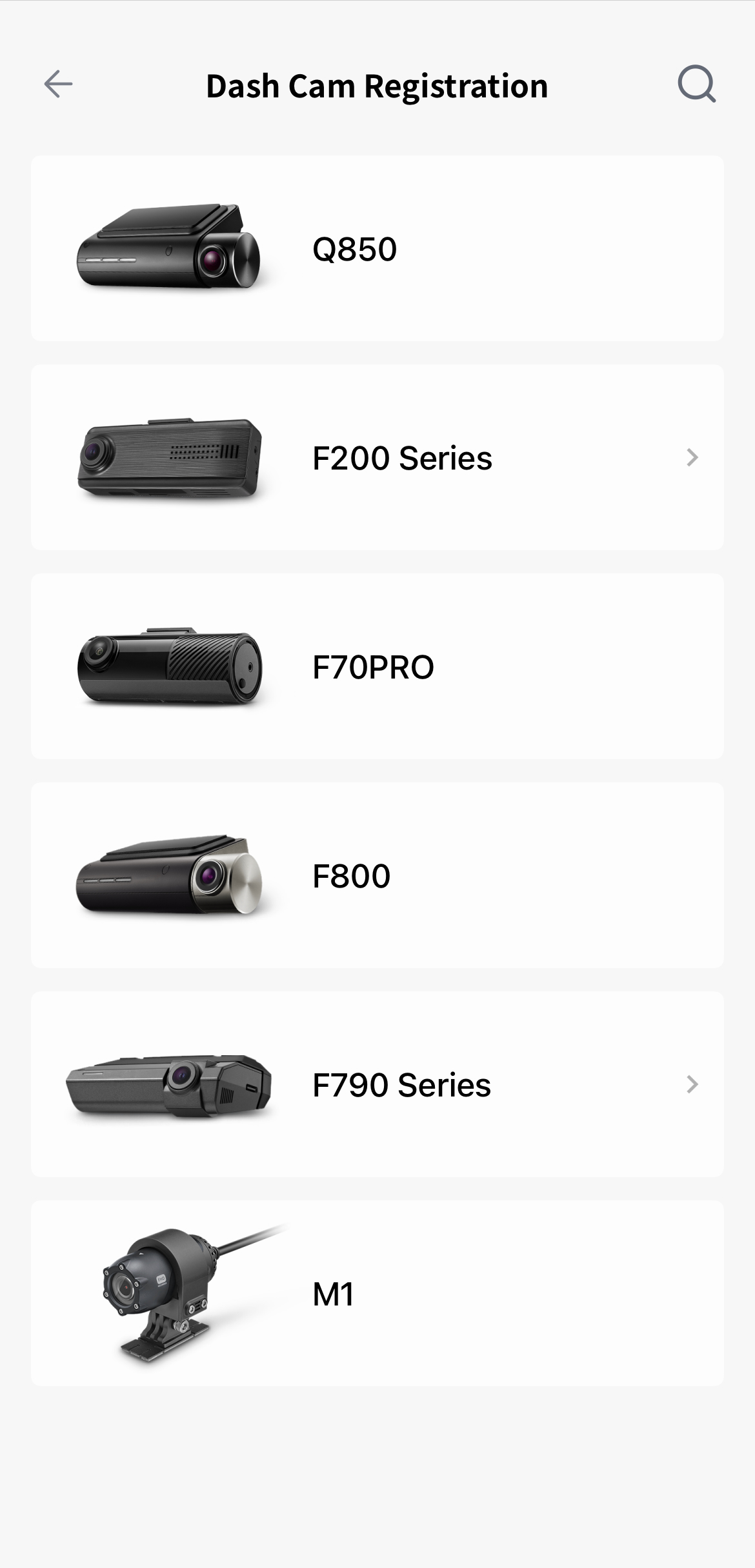 Select a dash cam to register F790 Series