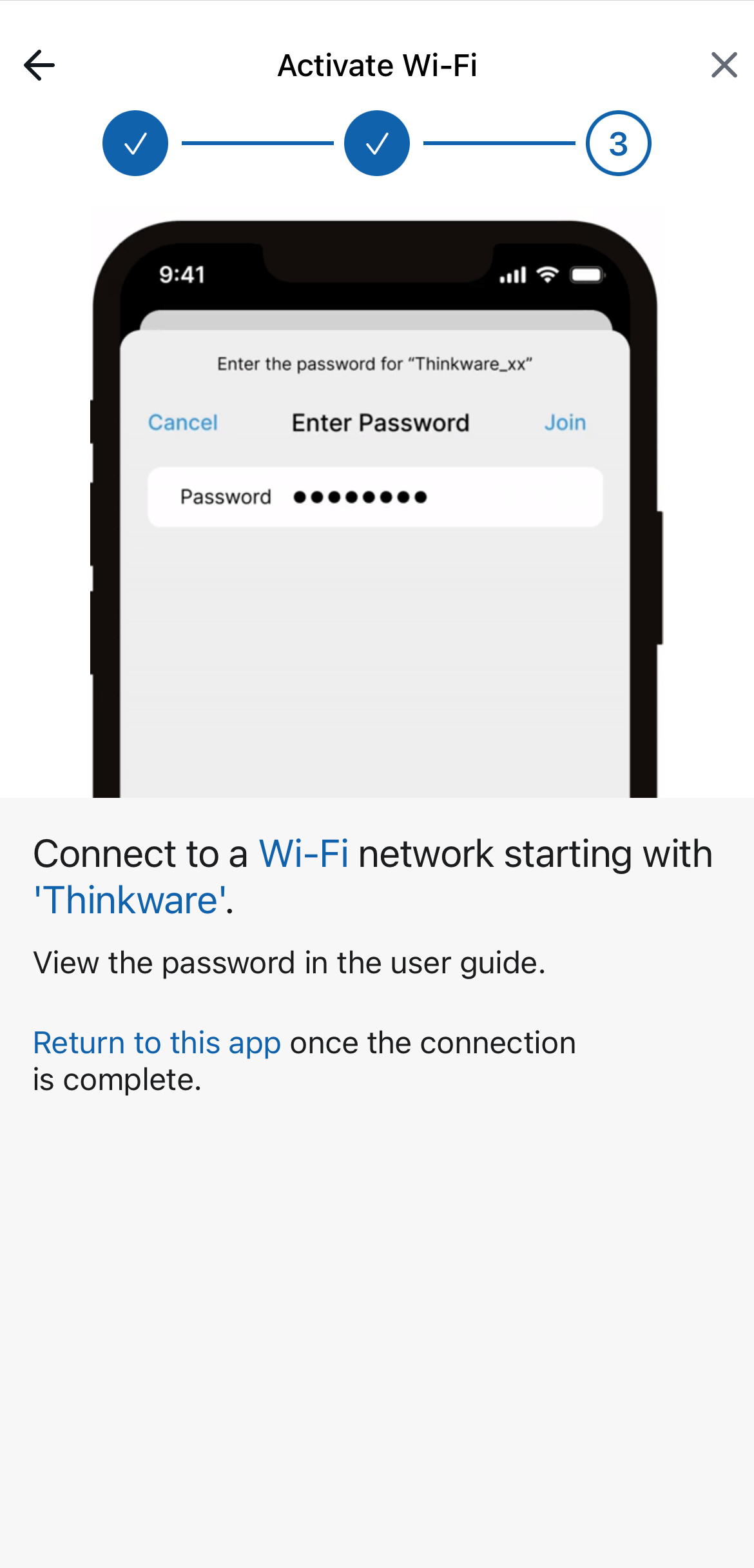 Connect to the WI-FI network that starts with "Thinkware"