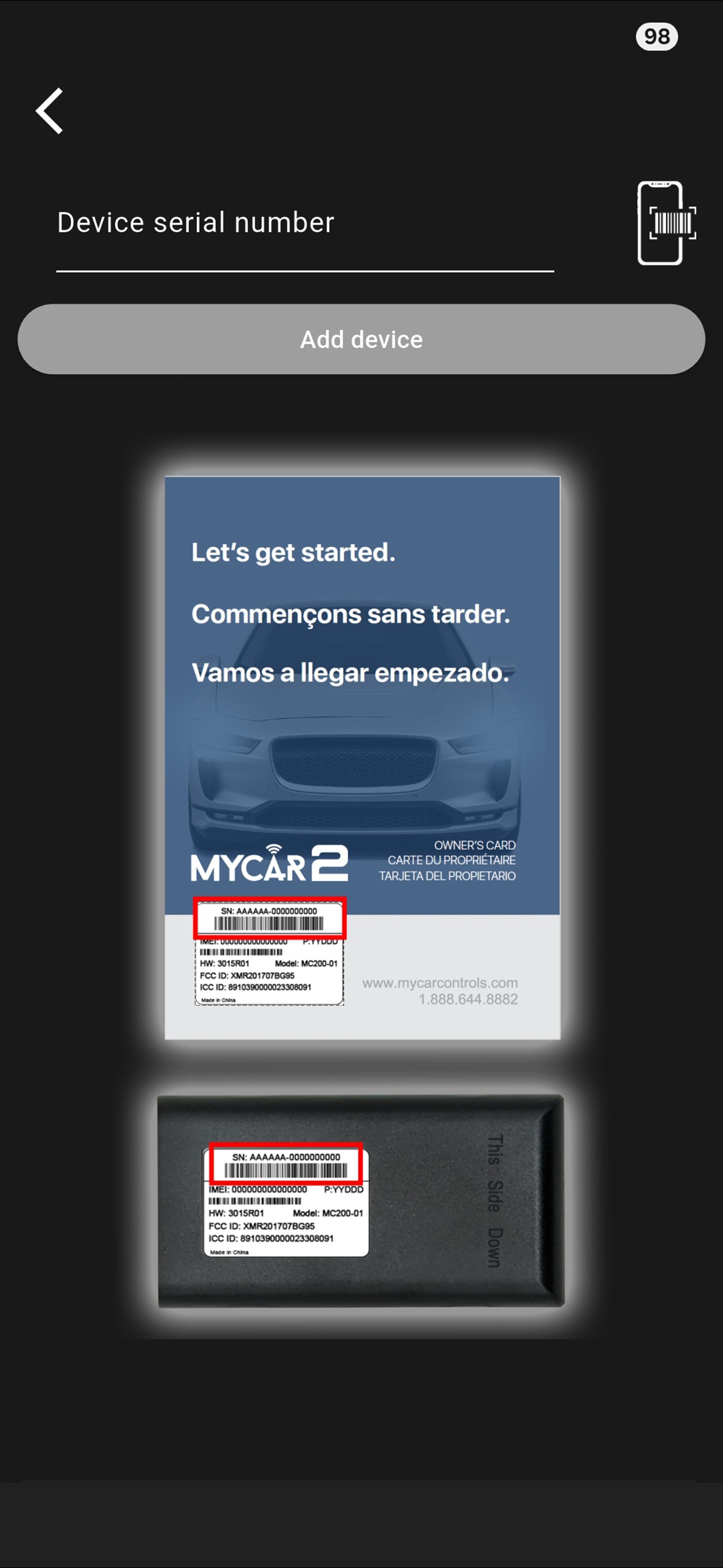 Ici, vous pouvez scanner ou entrer manuellement le nouveau numéro de série.
