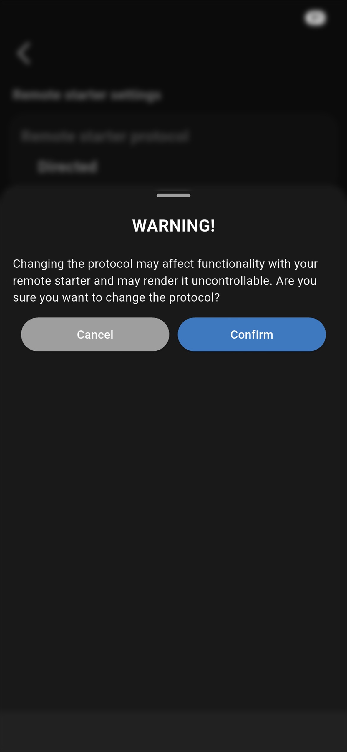 Faites défiler et sélectionnez le bon protocole pour votre démarreur à distance/alarme, puis appuyez sur « Confirmer »