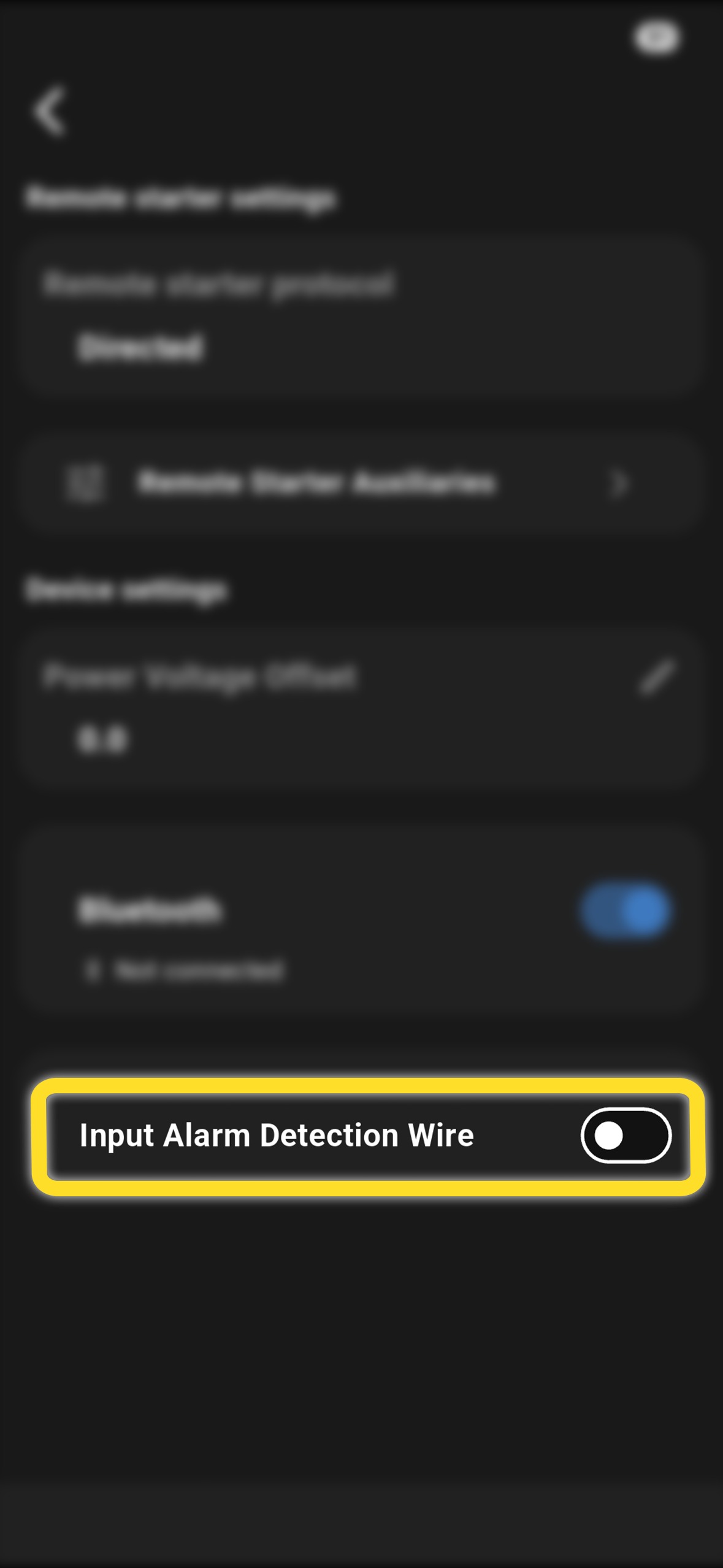 Active ou désactive le fil d'entrée d'alarme sur MyCar2/CL6/LinkR si la détection d'alarme n'est pas disponible sur les données. (Le fil jaune doit être connecté au fil de sortie positif de la sirène ou du klaxon