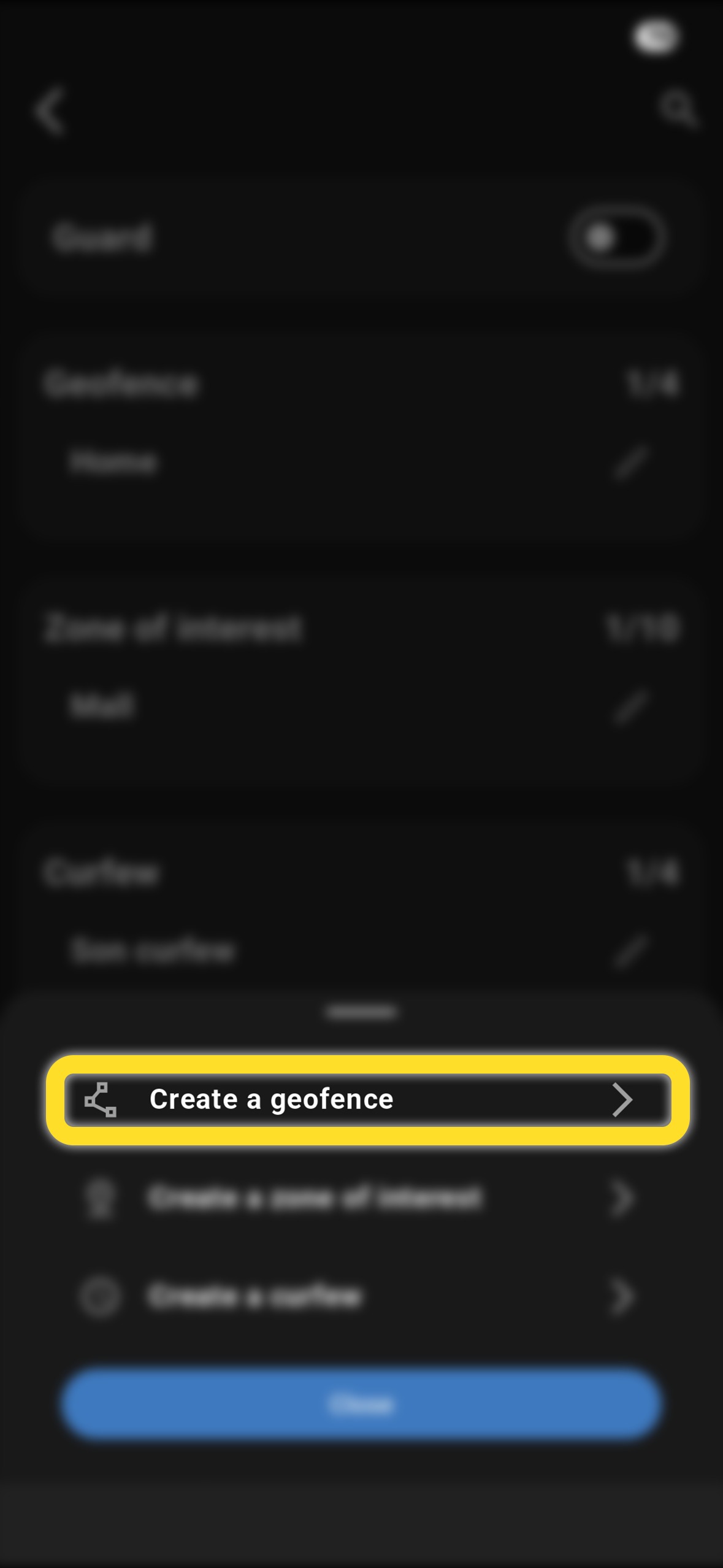 Appuyez sur « Créer un géorepérage »