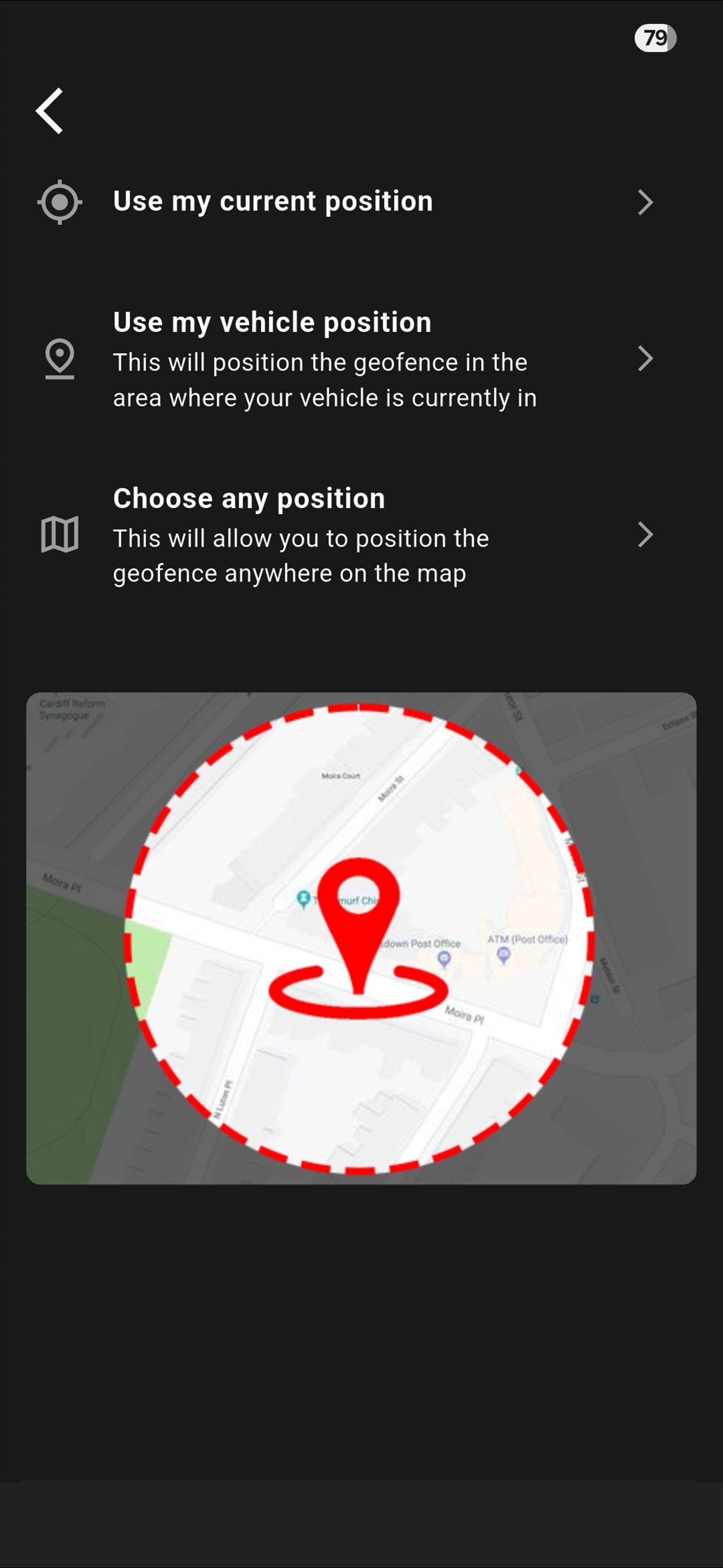 Utiliser l'emplacement actuel pour vous permet de choisir une forme de géorepérage que vous souhaitez ajouter.