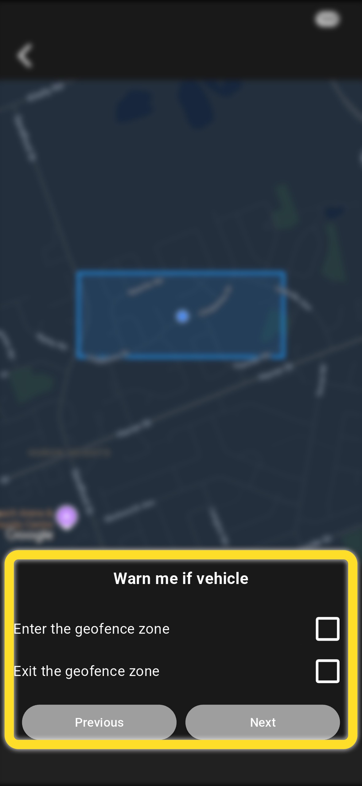 Sélectionnez si vous souhaitez être alerté lorsque le véhicule entre dans les endroits sélectionnés, en sort, ou les deux